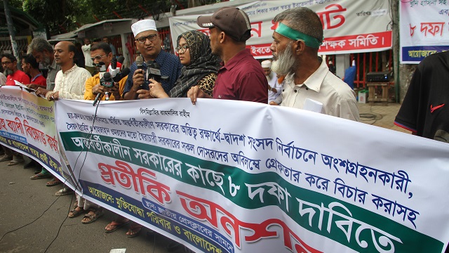 দাবিগুলো হলো- দ্বাদশ সংসদ নির্বাচনে অংশ নেওয়া বাংলাদেশ কল্যাণ পার্টির চেয়ারম্যান মেজর জেনারেল (অব.) সৈয়দ মুহাম্মদ ইব্রাহিম (বীর প্রতীক) ও সাবেক বিএনপি নেতা ব্যারিস্টার শাহজাহান ওমরসহ স্বৈরাচারী সরকারের সব দোসরদের গ্রেপ্তার করে তাদের বিচার; ছাত্র-জনতার আন্দোলনে যারা শহিদ হয়েছেন তালিকা করে তাদের জাতীয় বীরের মর্যাদা দেওয়া এবং প্রত্যেক পরিবারকে ক্ষতিপূরণ ও আহতদের সুচিকিৎসার ব্যবস্থা; শেখ হাসিনার জুলুমের শিকার ক্ষতিগ্রস্ত ব্যক্তি ও প্রতিষ্ঠানের থানাভিত্তিক তালিকা প্রস্তুত করে ৪৫ দিনের মধ্যে ক্ষতিপূরণ দেওয়া; ঘুষখোর, দুর্নীতিবাজ, অর্থপাচারকারী, লুটপাটকারী ও সন্ত্রাসীদের বিরুদ্ধে কঠোর ব্যবস্থা নেওয়া; বিগত সরকারের নির্যাতনগুলো জাতীয়ভাবে প্রচার; নির্বাচনের পূর্বে স্বতন্ত্র প্রার্থীদের এক শতাংশ ভোটারদের সমর্থন নেওয়ার বিধান বাতিল; শহিদ মুক্তিযোদ্ধা পরিবারের জন্য ঝুলে থাকা ভাষানটেক পুনর্বাসন প্রকল্প ও কলমিলতা বাজার বিষয়গুলো দ্রুত সমাধান এবং সাধারণ বস্তিবাসী ও নিম্নবিত্ত মানুষের জীবনমান উন্নয়নের জন্য এনএসপিডিএলের গৃহীত পুনর্বাসন প্রকল্পসহ কমপক্ষে ১০০টি প্রকল্প জরুরি ভিত্তিতে চালু করা।