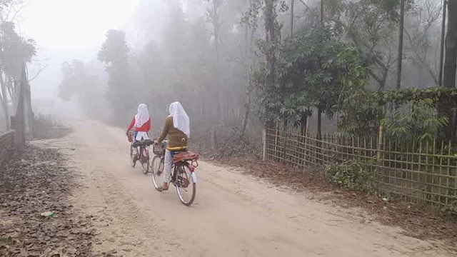 দুপুরের দিকে ঘন কুয়াশা কেটে কিছু সময়ের জন্য সূর্য উঁকি দিলেও তেমন উত্তাপ ছড়াতে পারছে না। দিনের বেলায় তাপমাত্রা কিছুটা বাড়লেও সন্ধ্যা ঘনিয়ে আসার সঙ্গে সঙ্গে আবার কুয়াশা পড়তে শুরু করে।