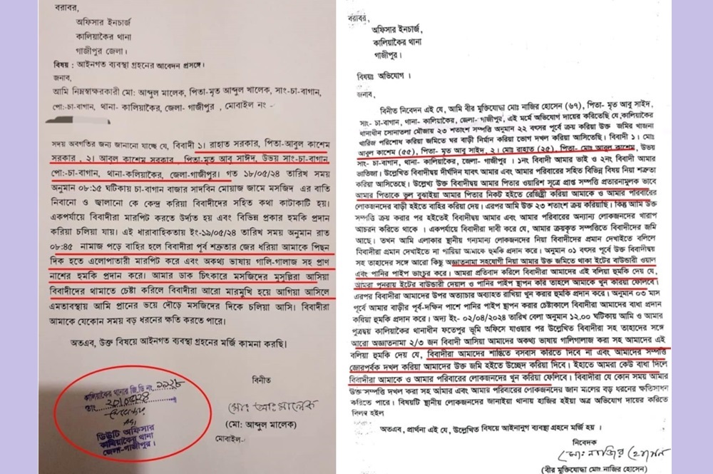 এছাড়াও একই মসজিদের বাতি জ্বালানো-নিভানোকে কেন্দ্র করে মাদ্রাসা শিক্ষক ও মসজিদ কমিটির সাধারণ সম্পাদক আলহাজ্ব আব্দুল মালেককে লাঠি দিয়ে পিটিয়ে গুরুতর জখম করে। এ ঘটনায় কালিয়াকৈর থানায় মামলা হলে বাবা-ছেলেকে আসামী করে আদালতে প্রসিকিউশন রিপোর্ট দাখিল করে পুলিশ।