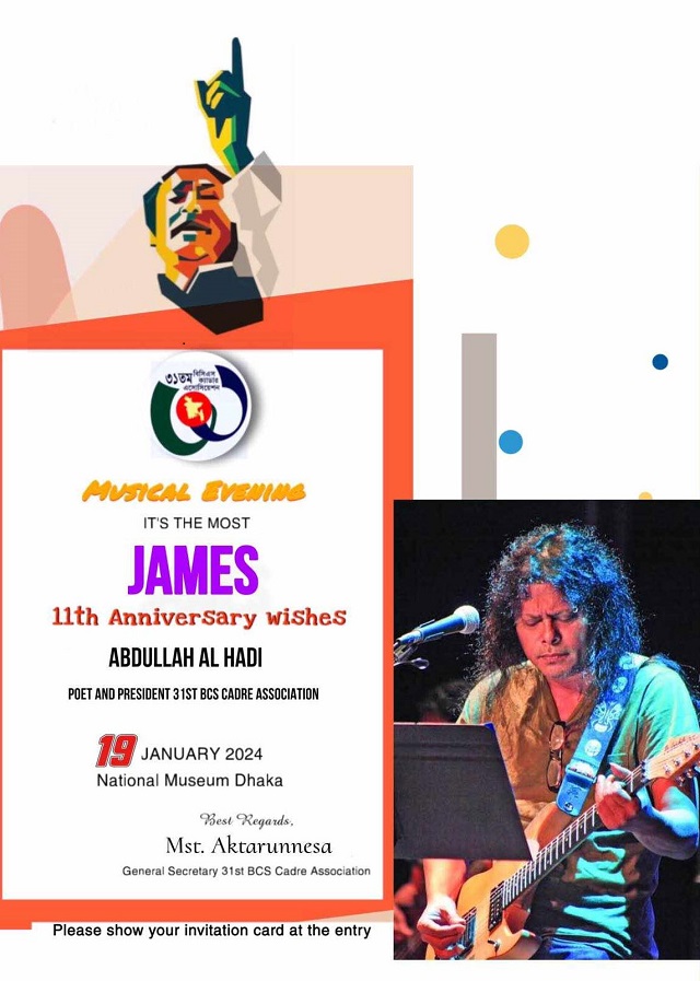 ৩১তম বিসিএস ক্যাডার অ্যাসোসিয়েশনের ১১ বছরপূর্তিতে গাইবেন জেমস