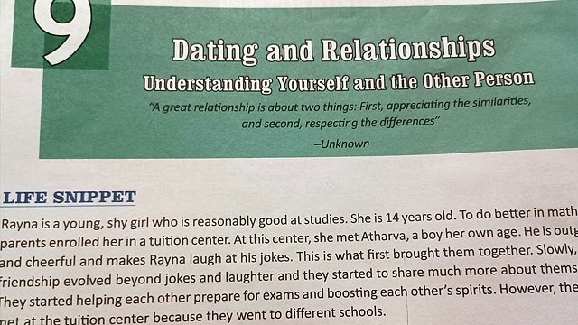 এদিকে ভারতের নবম শ্রেণির সিলেবাসে এমন বিষয় যোগ করেছে, যেখানে ‘ডেটিং’, ‘সম্পর্কের জটিলতা’ ইত্যাদি নিয়ে আলোচনা করা হয়েছে। এসব নিয়ে লেখা অংশের ছবি সামাজিক যোগাযোগ মাধ্যমে ঘুরছে। এ পদক্ষেপকে সাধুবাদ জানাচ্ছেন অনেকেই। পুরো অধ্যায়টি পড়ার ইচ্ছে প্রকাশও করছেন কেউ কেউ। অনেকে নিজেদের স্কুল জীবনের অভিজ্ঞতার কথাও বলছেন। অনেক বাবা-মায়েরাই এই বিষয়ে প্রতিক্রিয়া জানাচ্ছেন।