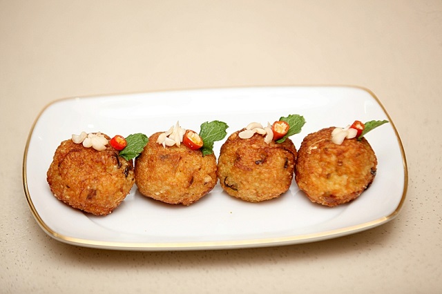 তেল ছাড়া সব উপকরণ একসঙ্গে মেখে মিশ্রণ তৈরি করে নিন। এ থেকে পছন্দমতো কয়েকটি বল বানিয়ে নিন। এগুলো ডুবো তেলে সোনালি করে ভেজে সস দিয়ে গরম-গরম পরিবেশন করুন।