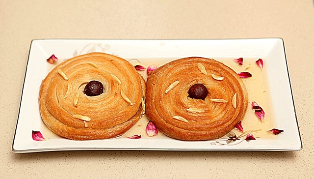 পরিমাণমতো গরম পানিতে ঘি ও সামান্য লবণ দিয়ে তাতে ময়দা দিন এবং নাড়ুন। খুব মসৃণ করে মেখে নিয়ে পাতলা রুটি বানিয়ে নিন। এই রুটি রোল করে জিলাপির মতো পিঠা তৈরি করুন এবং ডুবো তেলে ভেজে নিন। এবার শিরায় কিছুক্ষণ ডুবিয়ে রাখুন। ঠান্ডা করে বাদাম কুচি দিয়ে পরিবেশন করুন।