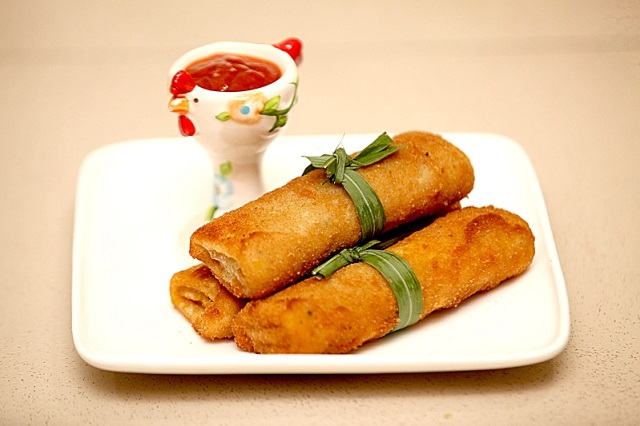 পুরের সব উপকরণ থেকে ডিম ও বিস্কুটের গুঁড়া ছাড়া বাকিগুলো মেখে নিন। এবার প্যানে তেলে এগুলো দিয়ে নাড়াচাড়া করে পুর বানিয়ে নিন। পুর কিছুটা ঠান্ডা হলে, রুটির মাঝে পুর দিয়ে রোল করে নিন। এবার ডিমের গোলায় ডুবিয়ে বিস্কুটের গুঁড়া মেখে ডুবো তেলে বাদামি করে ভেজে সস দিয়ে পরিবেশন করুন।