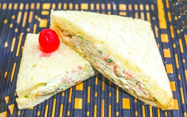 উপকরণ: পনির ২ টুকরা, স্যান্ডউইচ ব্রেড স্লাইস ৬ টুকরা, মেয়নিজ ২ টেবিল চামচ, স্প্রেড চিজ ২ টেবিল চামচ, গাজরকুচি সিকি কাপ, বাঁধাকপি সিকি কাপ, সুইট কর্ন ২ টেবিল চামচ, হাড়ছাড়া মুরগির মাংস ১৫০ গ্রাম, গোলমরিচের গুঁড়া সিকি চা–চামচ, টমেটো সস ১ টেবিল চামচ, কাসুন্দি ১ টেবিল চামচ, শসা ১টি (টুকরো করা), পেঁয়াজ ১টি (টুকরো করা), লেটুসপাতা ২টি, ডিম ২টি, মাখন ২৫ গ্রাম ও লবণ পরিমাণমতো।
