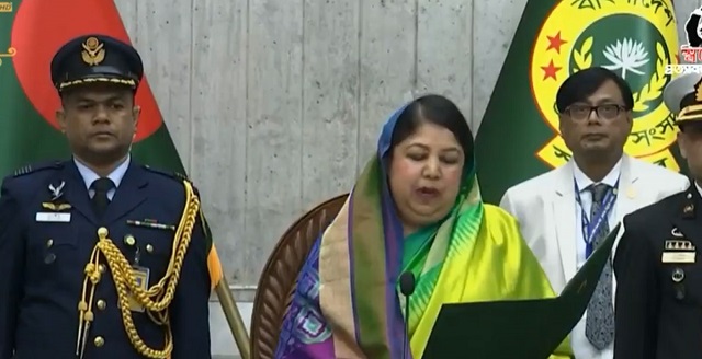 নবনির্বাচিত এমপিদের শপথবাক্য পাঠ করান স্পিকার শিরীন শারমিন চৌধুরী।