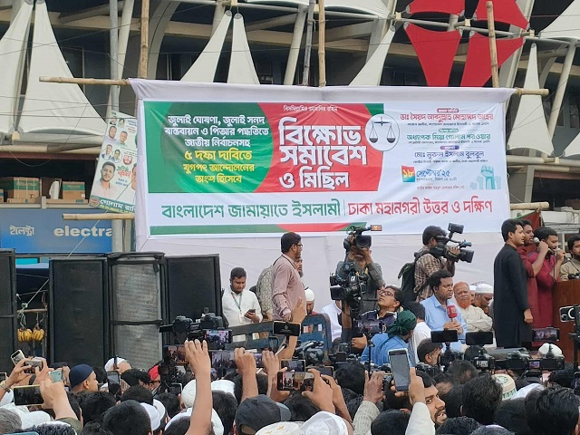 জুলাই ঘোষণা, জুলাই সনদ বাস্তবায়ন এবং পিআর (প্রোপোরশনাল রিপ্রেজেন্টেশন) পদ্ধতিতে জাতীয় নির্বাচনসহ পাঁচ দফা দাবিতে বাংলাদেশ জামায়াতে ইসলামীর বিক্ষোভ সমাবেশ শুরু হয়েছে।