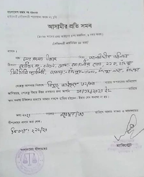 ঘুষের টাকা না পেয়ে মামলা (সিআর-২৯২/২০) দিয়ে গ্রাহক হয়রানি করছেন বাংলাদেশ বিদ্যুৎ উন্নয়ন বোর্ড (বিপিডিবি) চাঁদপুরের বিক্রয় ও বিতরণ বিভাগের উপ-সহকারী প্রকৌশলী মো. সাইফুল ইসলাম। শুধু তা-ই নয়, মামলা পরবর্তী আদালত কর্তৃক গ্রাহক বরাবর প্রেরিত সমনের কপি ১০ দিন নিজের হেফাজতে রেখে হাজিরার দিন দুপুর ১২টায় ভুক্তভোগীর কাছে ওই কপি পৌঁছান তিনি।