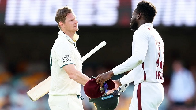 এর আগে ২ উইকেটে ৬০ রানের পর থেকে গ্যাবায় চতুর্থ দিন শুরু করেছিল অস্ট্রেলিয়া। স্মিথের সঙ্গে আগেরদিন অপরাজিত থাকা ক্যামেরন গ্রিন আজ ১১তম ওভারে শামার জোসেফের বলে বোল্ড হন। তার বিদায়ে ভাঙে দুজনের ৭১ রানের জুটি। এই অলরাউন্ডারের ব্যাটে আসে ৪২ রান। পরবর্তী ২৩ রানে স্বাগতিকরা আরও তিন ব্যাটসম্যানকে হারায়। মিচেল স্টার্ক ছাড়া সেভাবে আর কেউ বেশিক্ষণ সঙ্গ দিতে পারেননি স্মিথকে। স্টার্কের ব্যাটে অস্ট্রেলিয়ার তৃতীয় সর্বোচ্চ ২১ রান এসেছে।