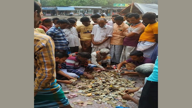 রোববার বিকালে রাস্তা পরিষ্কারের সময় বনপাড়া পৌরসভার কর্মীরা পরিত্যক্ত অবস্থায় একটি বস্তা পান। এতে দুই টাকা, পাঁচ টাকা, ১০ টাকা ও ৫০ টাকার নোট পাওয়া যায়। এসব টাকা গণনা করে ১৬ হাজার ৪২০ টাকা পাওয়া যায়।